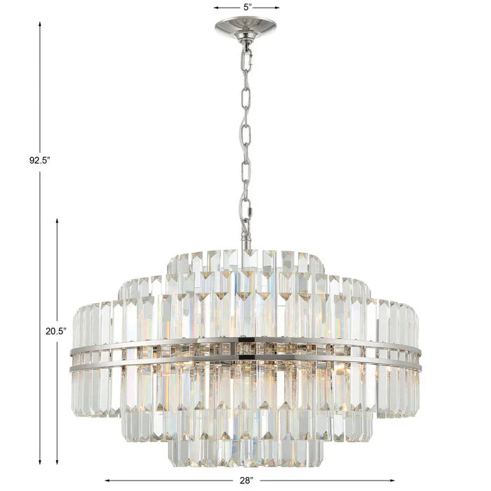 The Hayes Round Chandelier 28" 3 Tiers exudes elegance and modernity, making it an excellent addition to any bathroom or vanity area. Featuring four carefully arranged lights, this sconce is crafted with faceted crystal that captures and reflects light beautifully, creating a sparkling effect. The fixture is available in both Aged Brass and Polished Nickel finishes, offering a versatile, refined look that complements various decor styles. Perfect for adding a touch of luxury and functionality to your space, this wall sconce brings both style and practicality to your bathroom lighting.