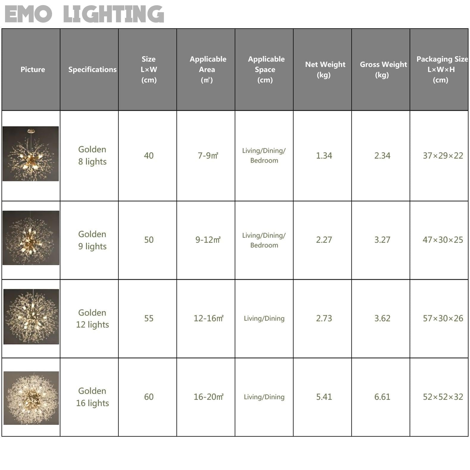 Choosing the right light size and installing it correctly are key to achieving the perfect balance of style and function. At Emo Lighting, we provide a simple guide to help you make the best decision for your space:
