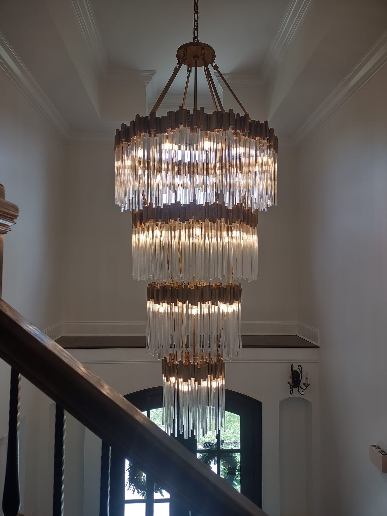 Choose from different finishes (brass, chrome, matte black, gold, or brushed nickel). Adjust wire lengths, chain extensions, and rod dimensions. We also offer lightweight materials such as stainless steel or iron to accommodate ceiling load requirements. -