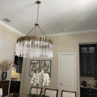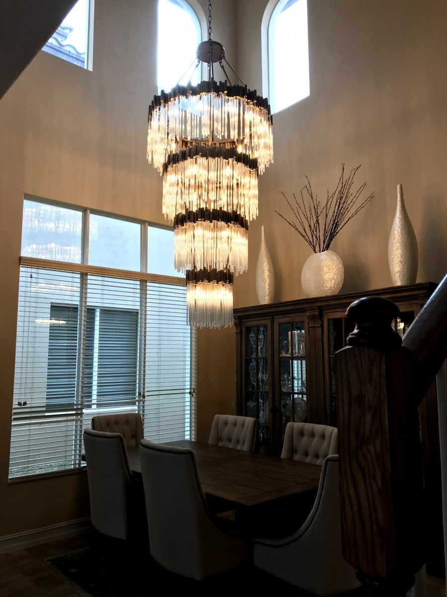 Dining Room: The chandelier should be ½ to ⅔ the width of the dining table.