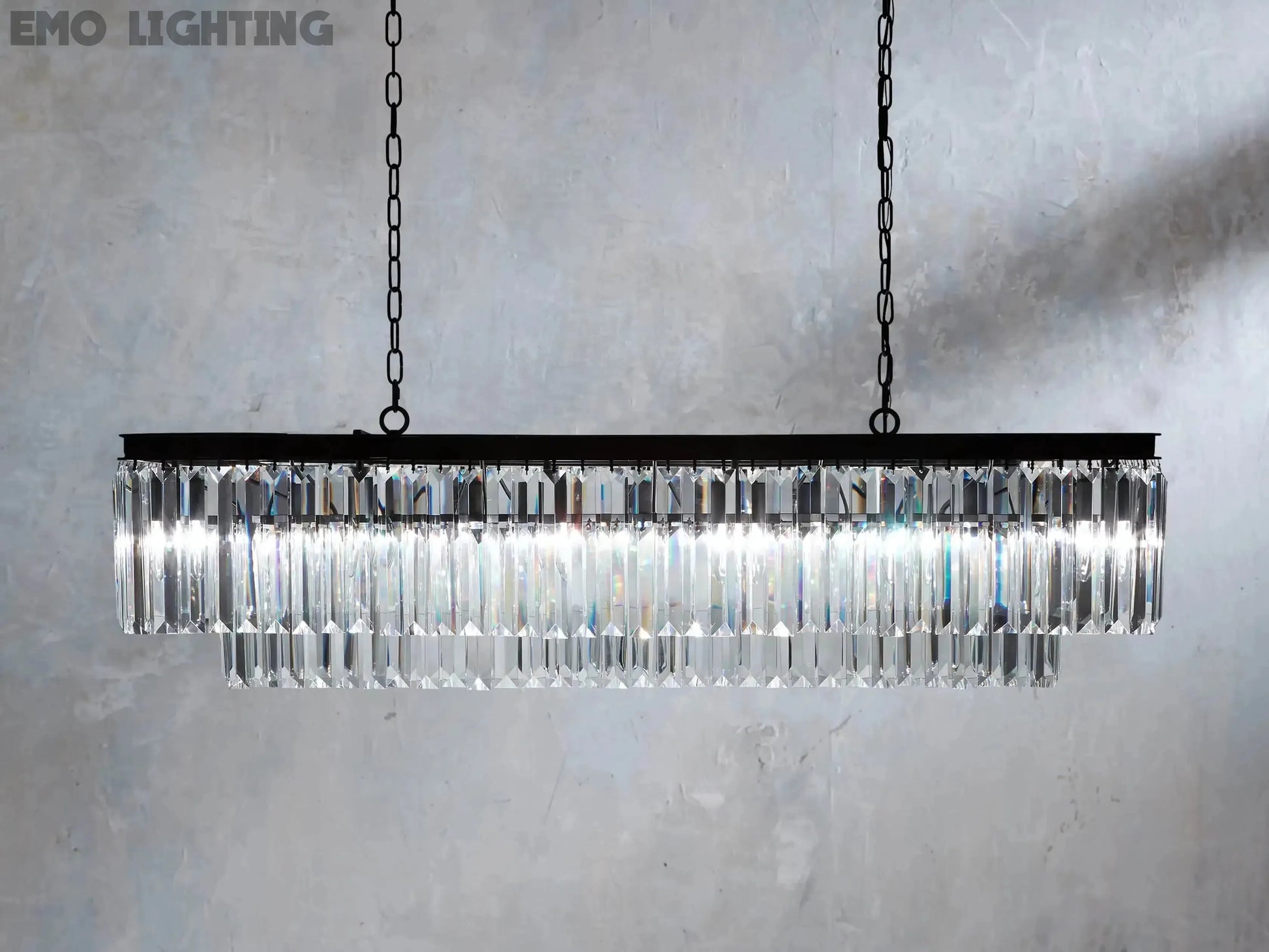 - French Art Deco style of the 1920s is reborn in our glamorous Leyland Lighting Collection, featuring layered row upon row of faceted glass crystals from a rustic iron frame.