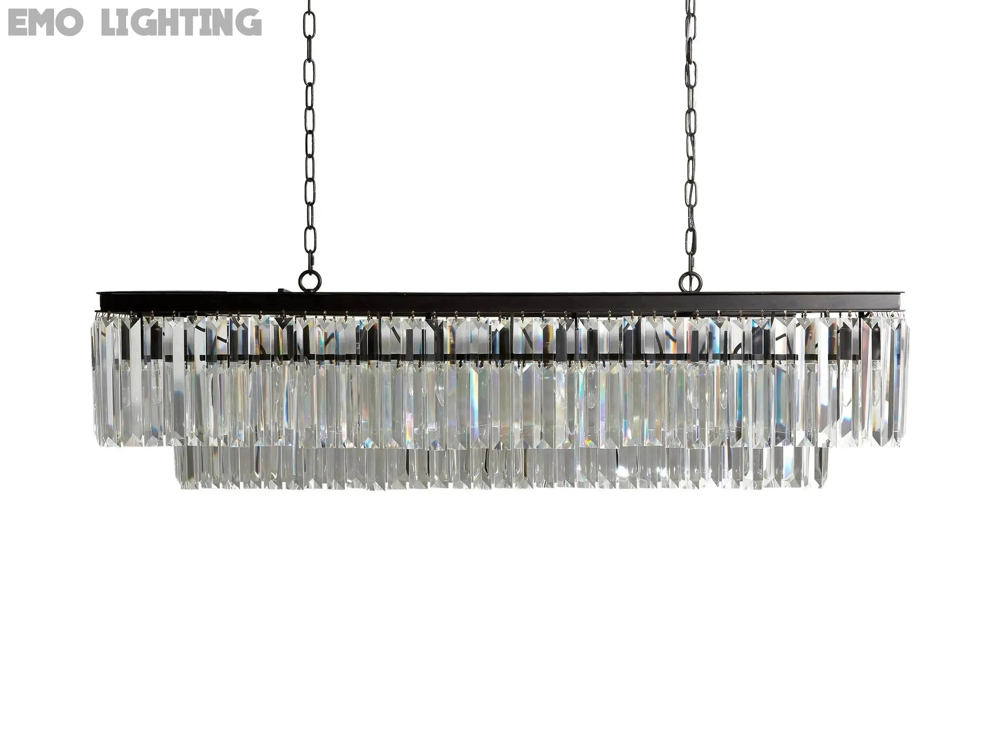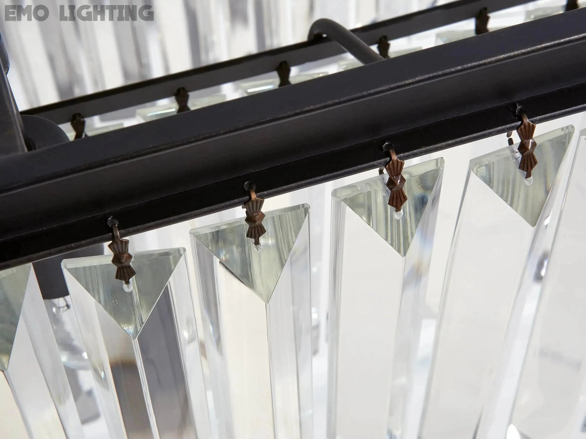 Crafted from multifaceted K9 glass crystals with an iron frame and oil-rubbed finish.