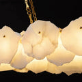 Meticulously crafted, Olivia's Graceful Oval Alabaster Chandelier features a sturdy metal frame that encases the alabaster panels. The alabaster, known for its translucent and marble-like appearance, adds a sense of luxury and sophistication to the chandelier. When illuminated, the alabaster panels create a warm and inviting glow, casting a soft ambiance throughout the room.