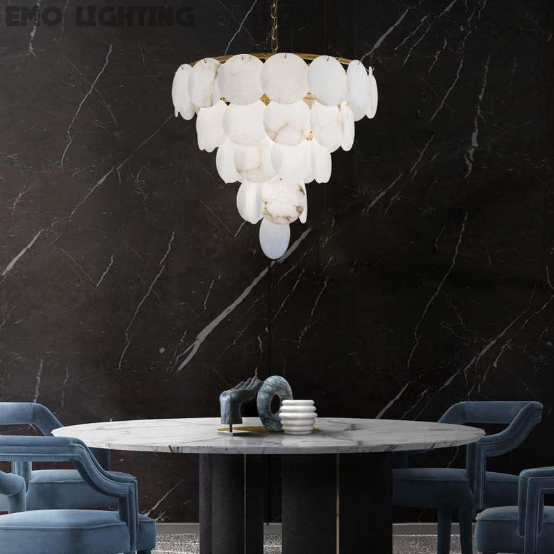 Aurora Round Chandelier Alabaster for Living Room Dining Table