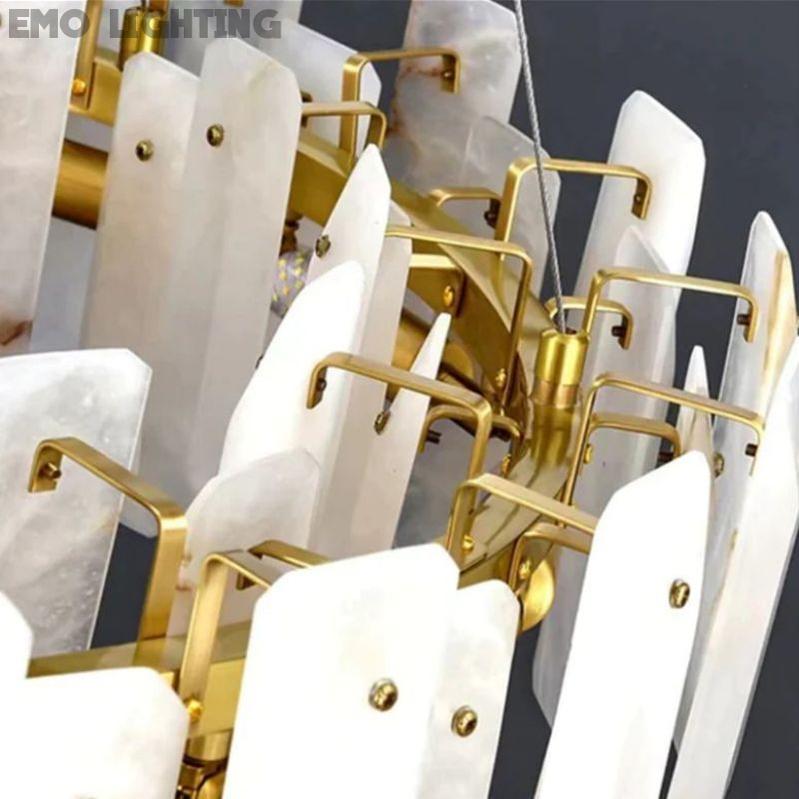 The material of alabaster is marble and copper, this series is a simple design with a modern style, its stylish style highlights its beauty and makes it give a warm and natural feeling while ensuring the light effect Feel.