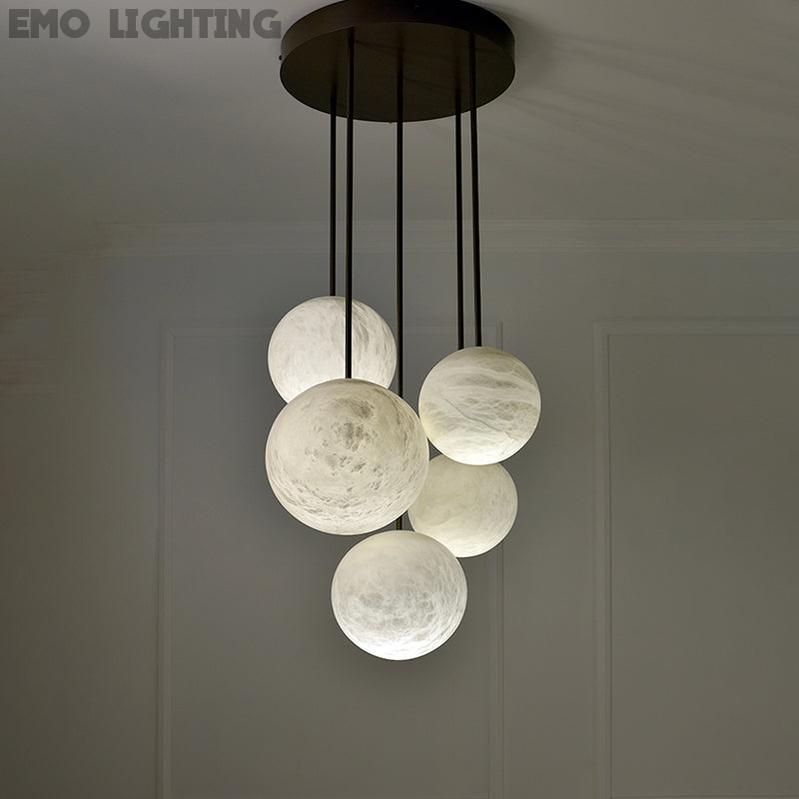 Luna Alabaster Sphere Staircase Chandelier, Multi Pendant Light
