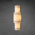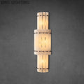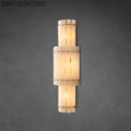 Our fixture, designed by renowned designer, evokes the glamour of 1960s Italian lighting. Dozens of translucent alabaster panes arranged within a sleek metal frame create a dramatic play of light and a softly diffused glow.