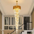 Elevate your entryway or staircase with our Luxury Gold Spiral Crystal Chandelier. Crafted with multiple tiers and clear crystals, this elegant piece is perfect for a classic modern aesthetic. Its high-quality craftsmanship ensures long-lasting beauty and sophistication. Upgrade your space with this popular and timeless chandelier.