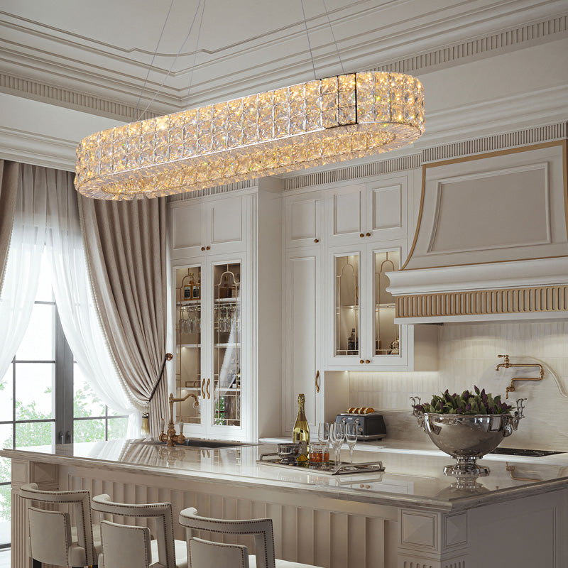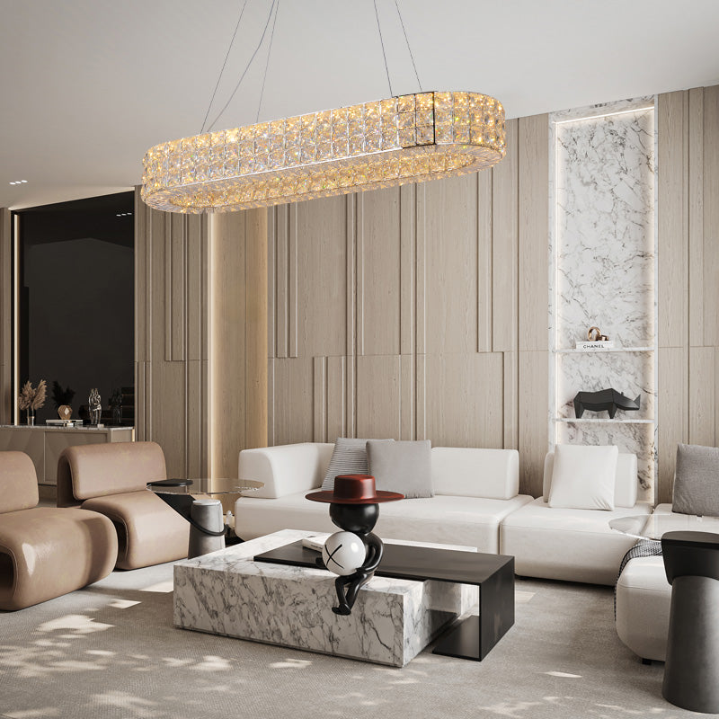 Perfectly sized for long dining tables or kitchen islands, this chandelier offers both glamour and functionality in equal measure. Its timeless rectangular silhouette suits a range of interior styles—from modern luxury to transitional sophistication.