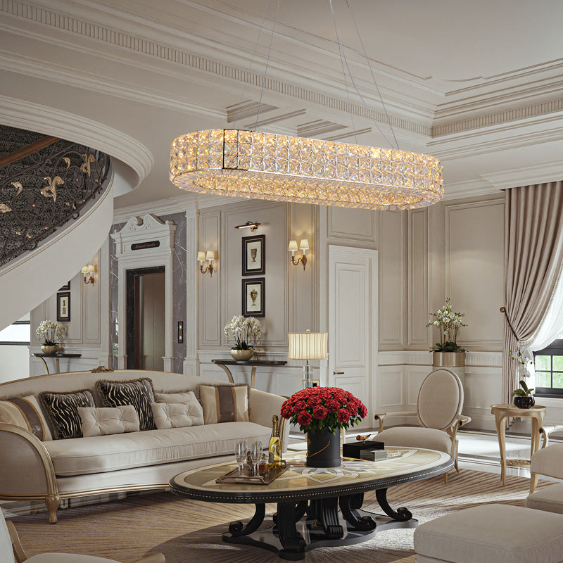 Luxury Rectangular Crystal Chandelier For Dining Room