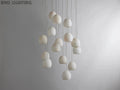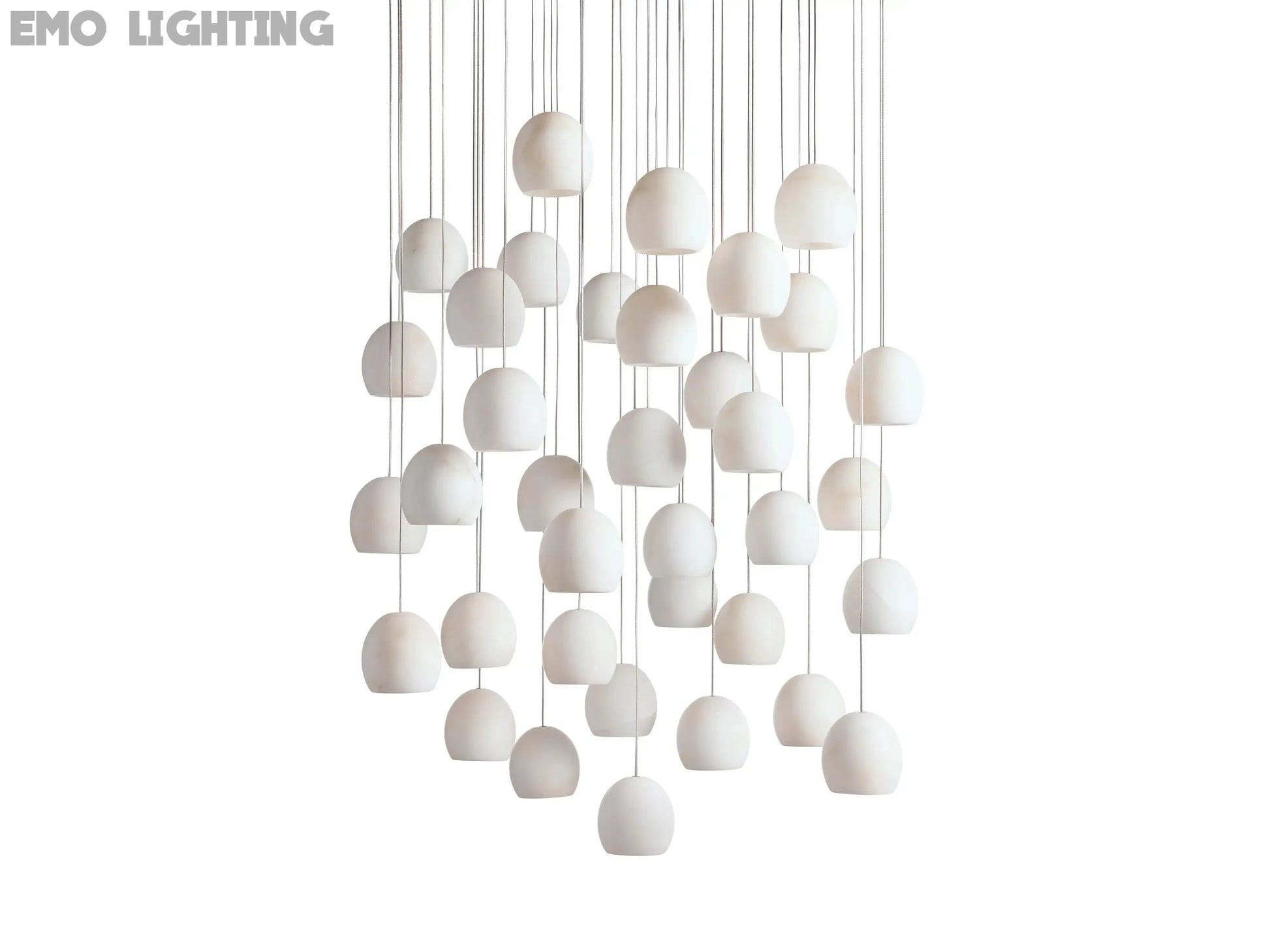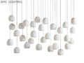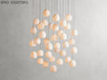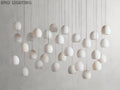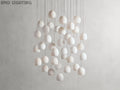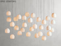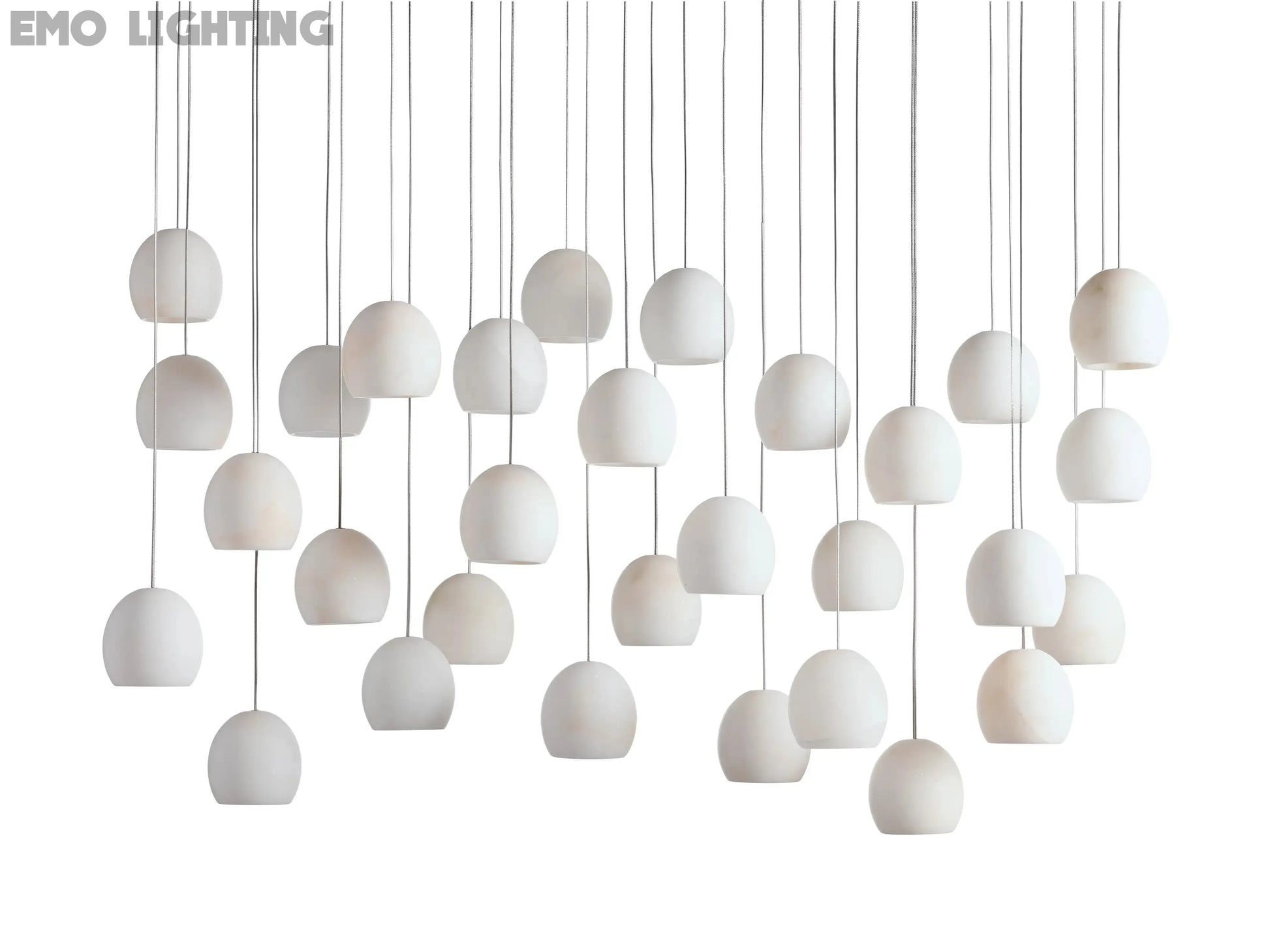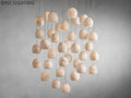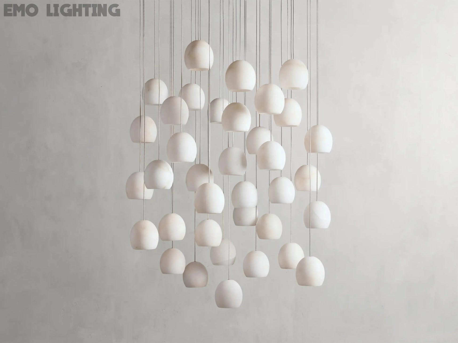WIDTH 33" DEPTH 33" HEIGHT 125" DIAMETER 33" WEIGHT 164 LBS NUMBER OF SOCKETS 30 MAXIMUM HANGING DISTANCE 125" CANOPY DEPTH 33" CANOPY WIDTH 33" - Made from PVC cables featuring a silver finish complemented by curved shades crafted from natural alabaster stone.