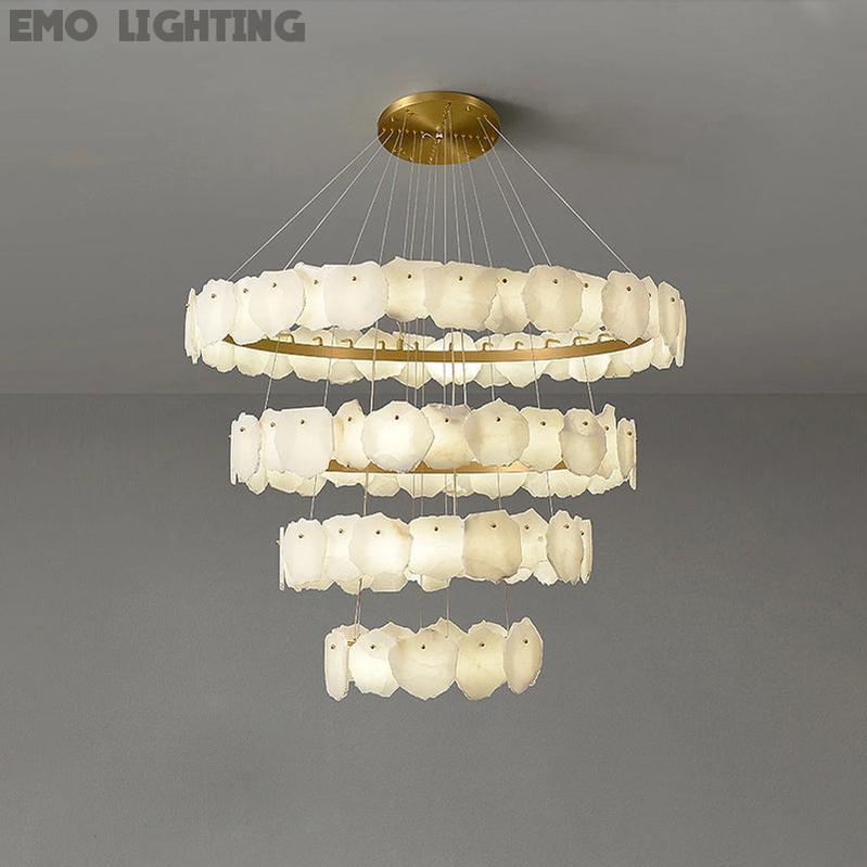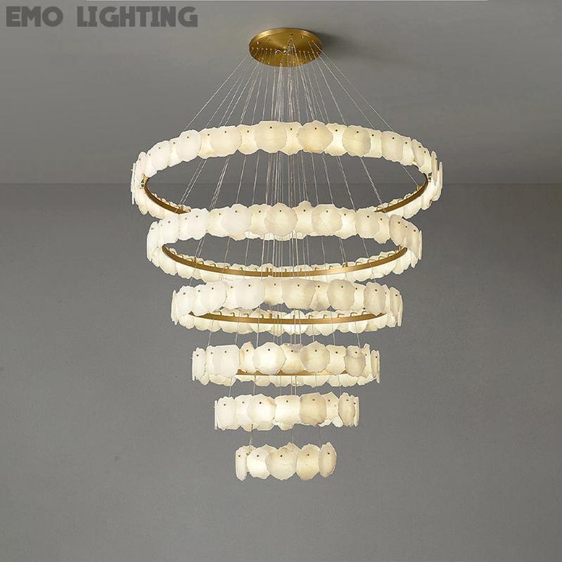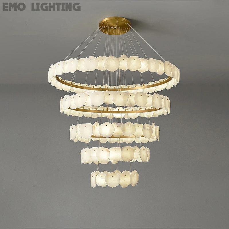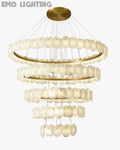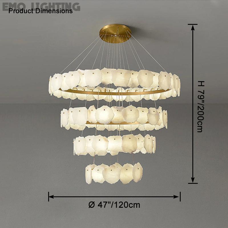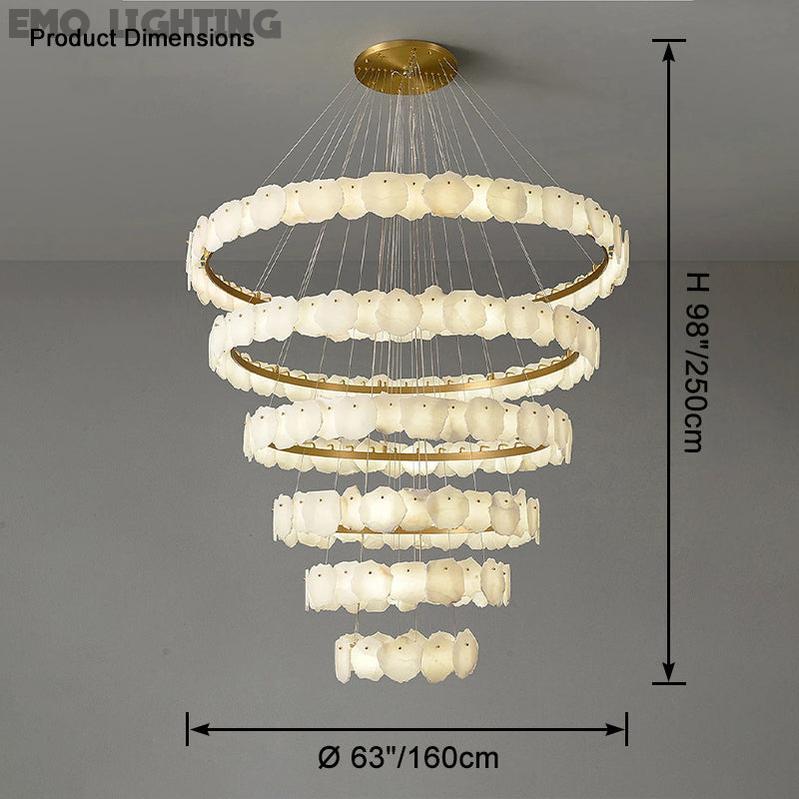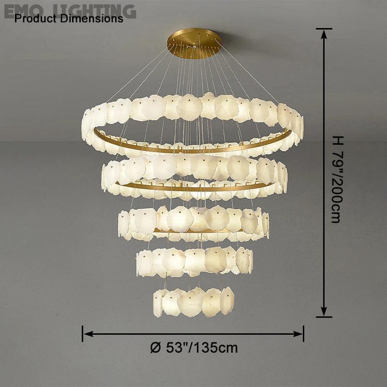 Elevate your space with the grand statement of our Merlin Tiered Circular Alabaster Chandelier! Featuring tiered circular LED lights encased in luxurious alabaster and finished in elegant gold, this contemporary chandelier will add a touch of opulence and sophistication to any room. Make a statement with this expensive, one-of-a-kind piece.