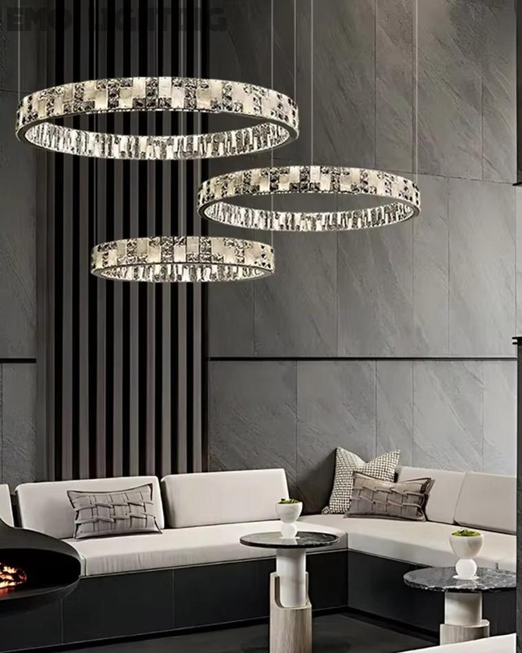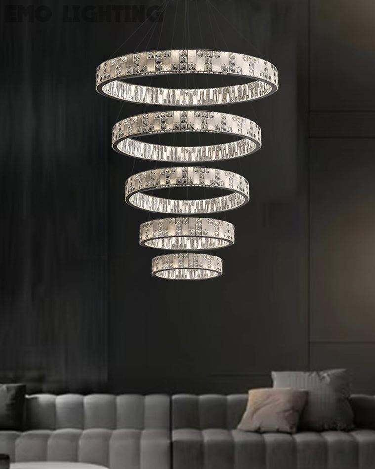 Add or reduce layers to transform a minimal fixture into a bold multi-tier chandelier, ideal for grand entrances or large dining spaces. -