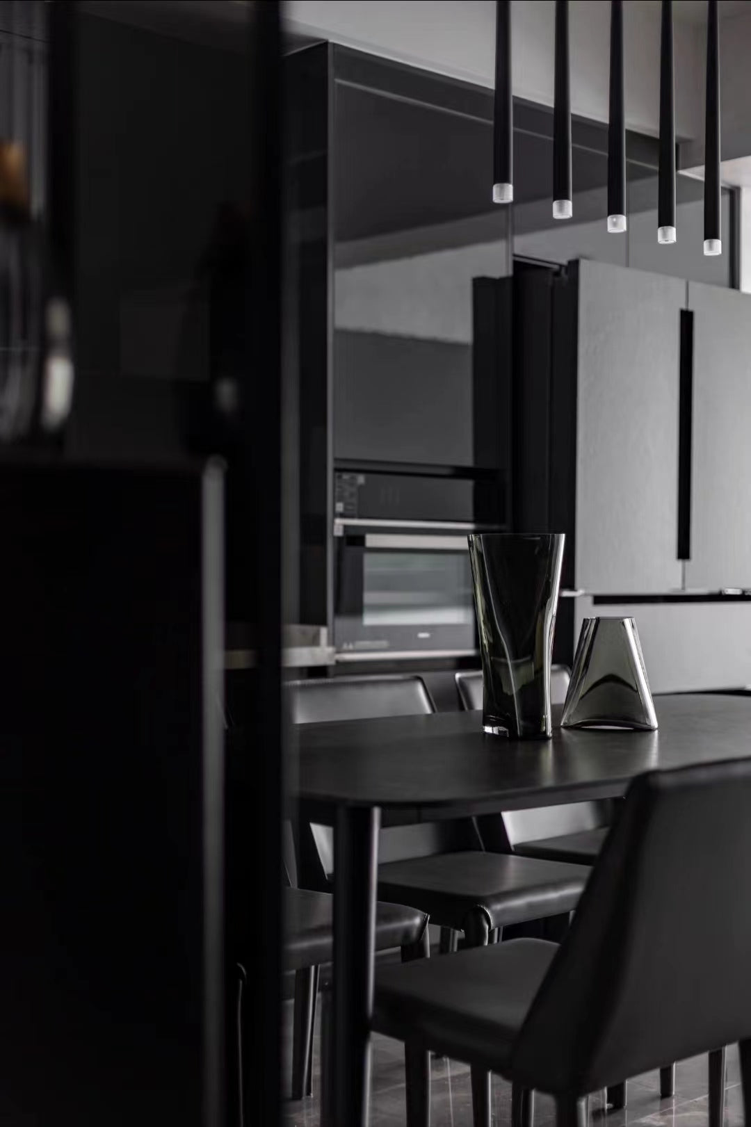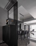 The body of this minimalist conical chandelier is made of iron, and the color of the body is made into a high-class black through the process of painting and frosting, which is anti-corrosion and rust-proof and durable. This chandelier is divided into a round chassis and a rectangular chassis, round chassis models for stairs or high floors of the living room, rectangular chassis can be used to decorate the dining room or set in the bed for night lighting.