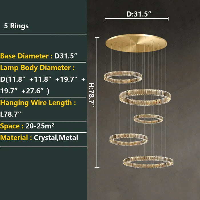 Modern Layered Ring Crystal Chandelier For High Ceiling Living Room /Foryer/Stairscase