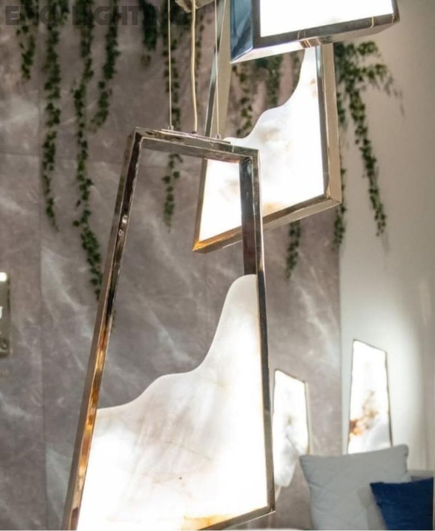 Transform any room into an elegant sanctuary with the Modern Luxury alabaster Chandelier. Inspired by nature, its organic design features a golden brass frame and elegant alabaster details. Elevate your space with this masterpiece that combines modern style and traditional craftsmanship.