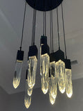 This modern, light luxury ceiling pendant light offers an elegant finishing touch to any kitchen island, staircase, or living room with its black finish and high-quality crystal. You can choose from 3 different bases: round, rectangular, and square. It features multiple light heads, giving off a bright, eye-catching glow. Whether decorating the dining room or living room or stairs can provide a high-class and comfortable aesthetic.