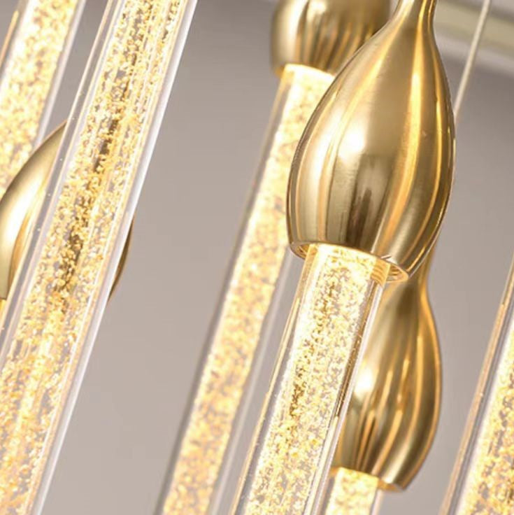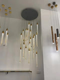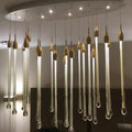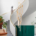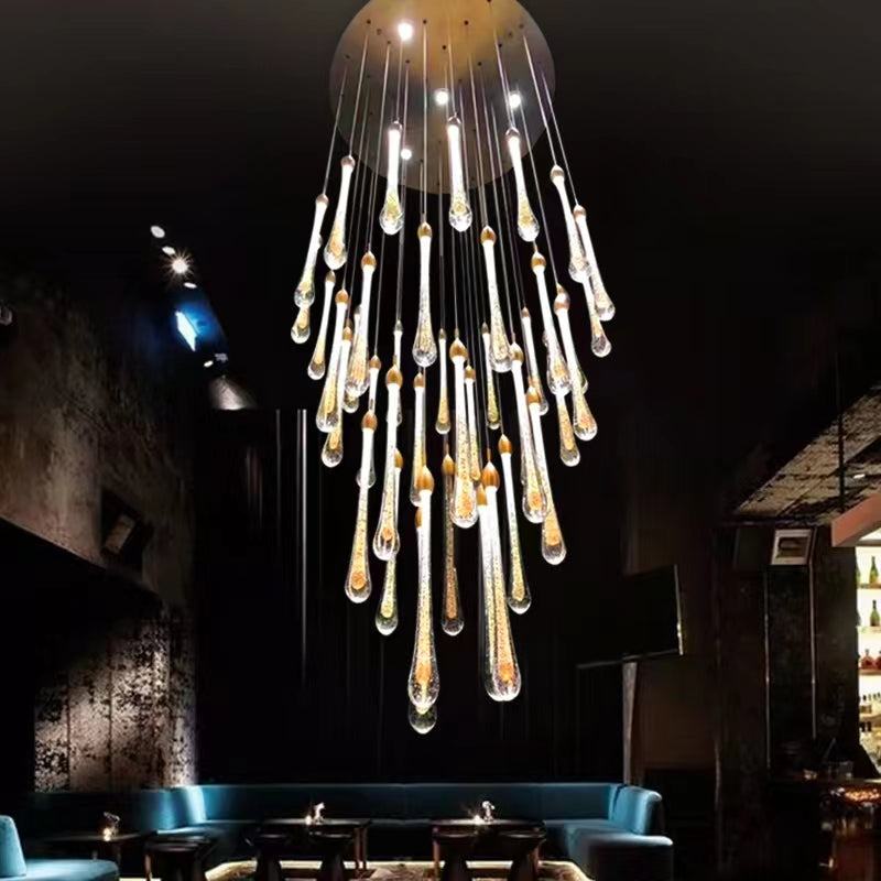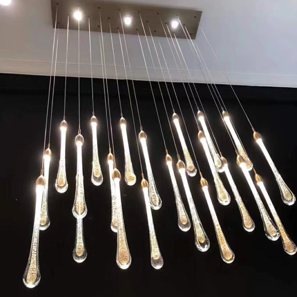 Modern Long Gold Glass Raindrop Rod Pendant Light for Staircase/High-ceiling room