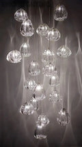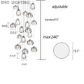 This exquisite set comes with 10/13/15/20/24/30 unique pendants crafted from hand blown glass, with a mix of clear barnacles and urchins. Each urchin is 4.5” tall and 5.5” wide, while each barnacle is 6.5” tall and 5” wide. The set includes a round/square satin nickel canopy , transformers, and up to 118.1' cords that are adjustable on site. Bulbs are also included.
