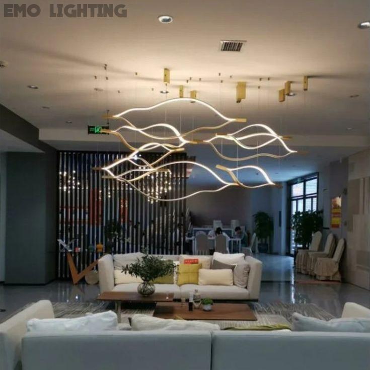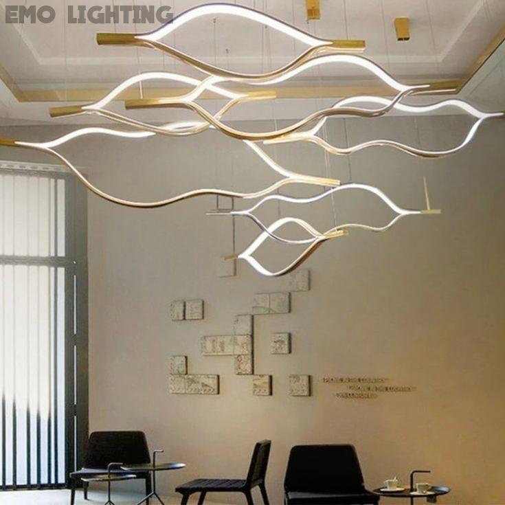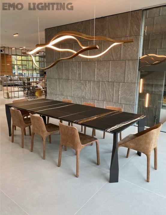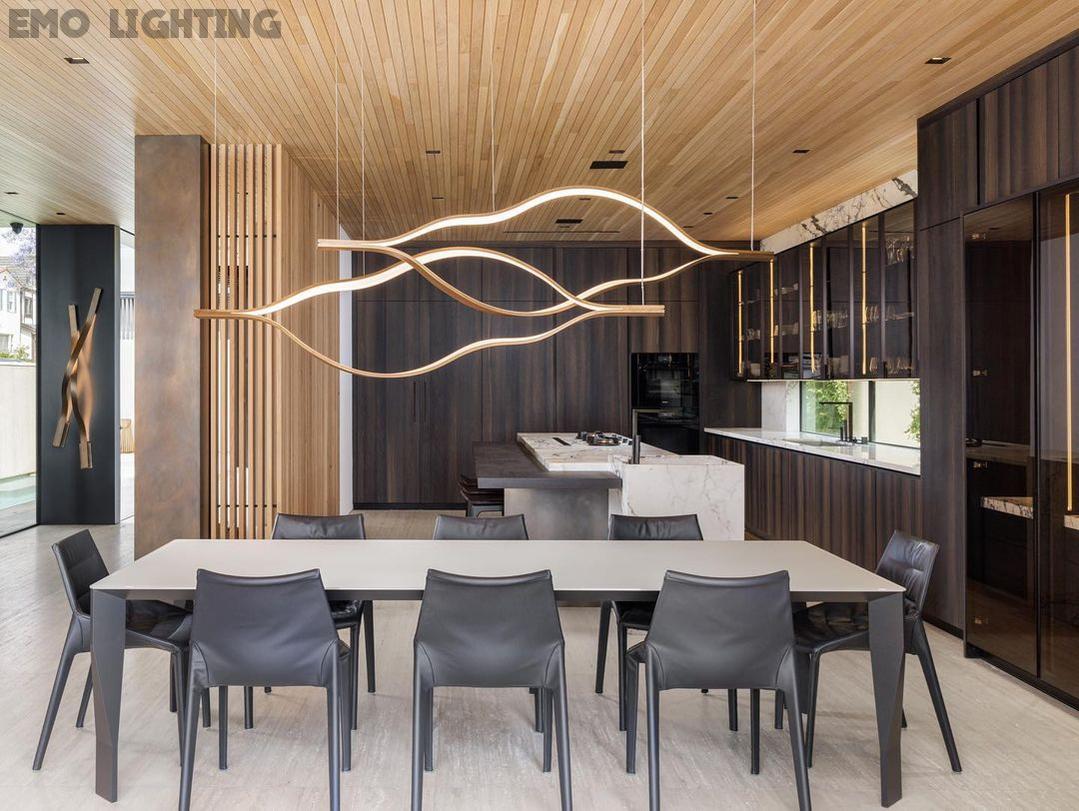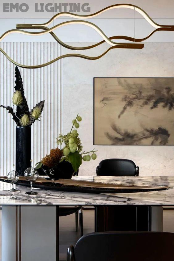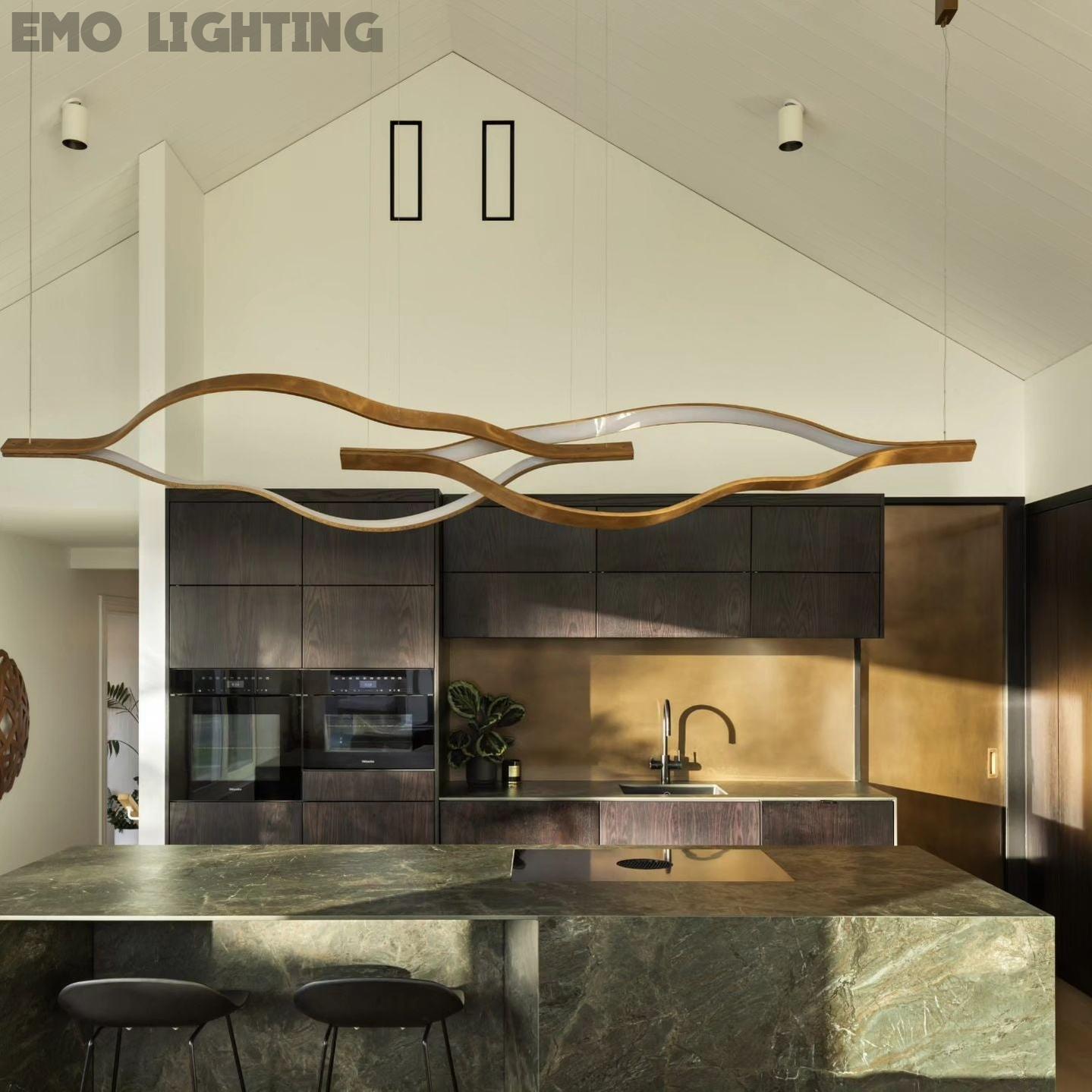 Modern Simple Brass Waving Chandelier for Living/Dining Room/Kitchen Island