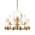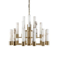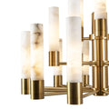 Beautiful statement Spanish Alabaster chandelier. This elegant light features a several alabaster tubes mounted on arms on a brass structure, creating an utterly mesmerising silhouette. This piece boasts an enchanting allure that will bring an industrial lux style to any room in the home.