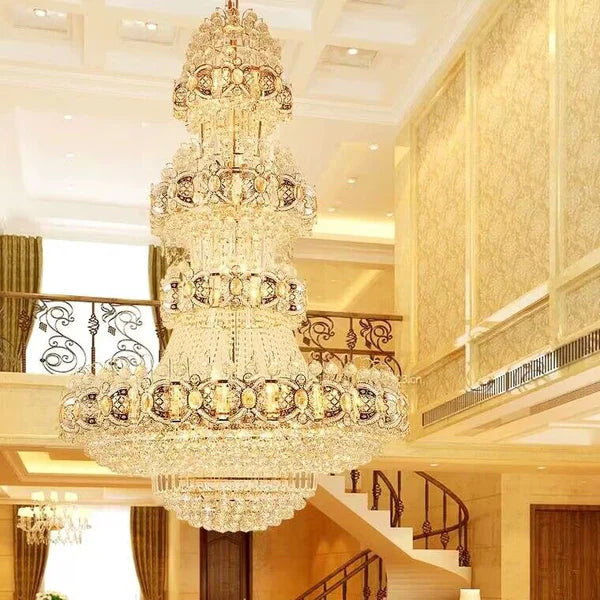 Oversized Luxury Multi-layers Gold Crystal Chandelier For High-ceiling Living Room/Foyer