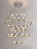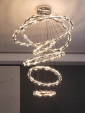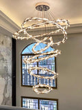 Oversized Multi-Tiered Rings Crystal Chandelier Modern Clear and Grey Crystal Ceiling Light Fixture For Staircase/Foyer/Hallway/Entryway