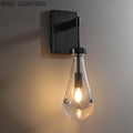 Much like the rhythm of a rainstorm itself. Suspended from slim black cords, drops of blown glass encase the bulbs creating the illusion of underwater illumination and cast luminous ripples that wash across ceilings and walls.