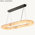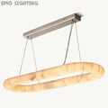 Our Rivage Lisse chandelier is minimalist in form and striking in effect, highlighting the beauty of calcite, a translucent stone that emits a warm, natural light. Suspended from slender steel cables, the chandelier’s halo of polished stone is skillfully pieced together to create a smooth, continuous surface, while subtle internal illumination highlights organic colors and textures. Each fixture is a unique statement.