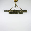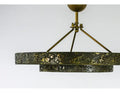 A statement of artistry and illumination, this modern chandelier blends refined materials with bold design. Twin alabaster discs diffuse a soft, ambient glow, encased in a textured brass frame that exudes handcrafted elegance. Suspended by sleek black metal rods, the fixture balances industrial strength with organic warmth. Perfect for grand dining rooms, sophisticated living spaces, or boutique hotel interiors, its 89 cm (35") diameter offers striking presence without overwhelming the space.