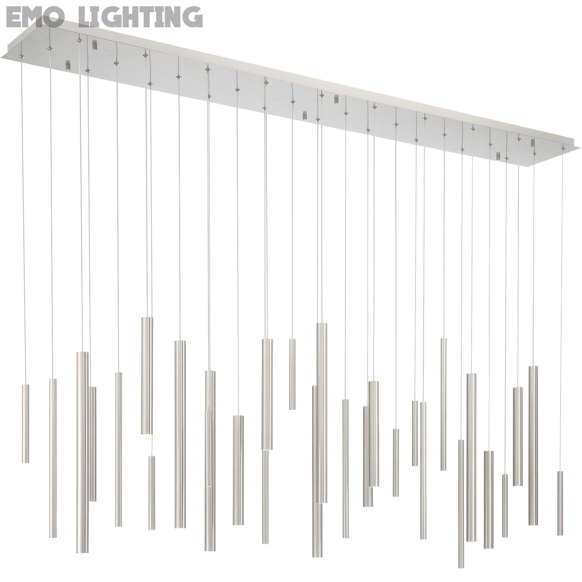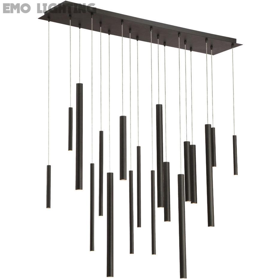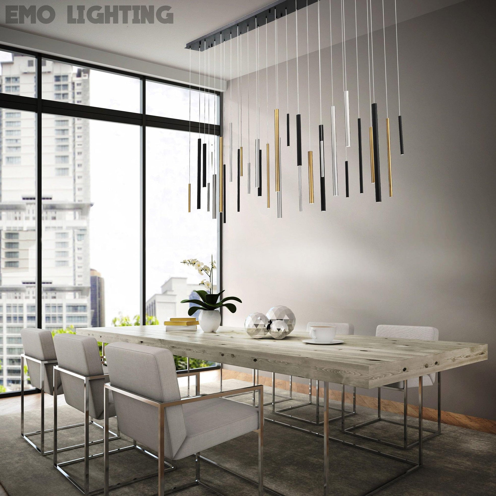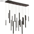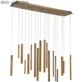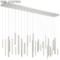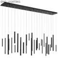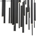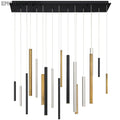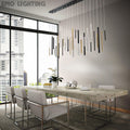 The Santana Linear Multi Light Pendant enhances your space with a sense of dynamic movement, composed of aluminum tubes of varying sizes hung at different adjustable heights. Each tube houses a recessed LED light at the end for collective spot lighting. This dramatic fixture is an ideal centerpiece for modern dining rooms and living areas.