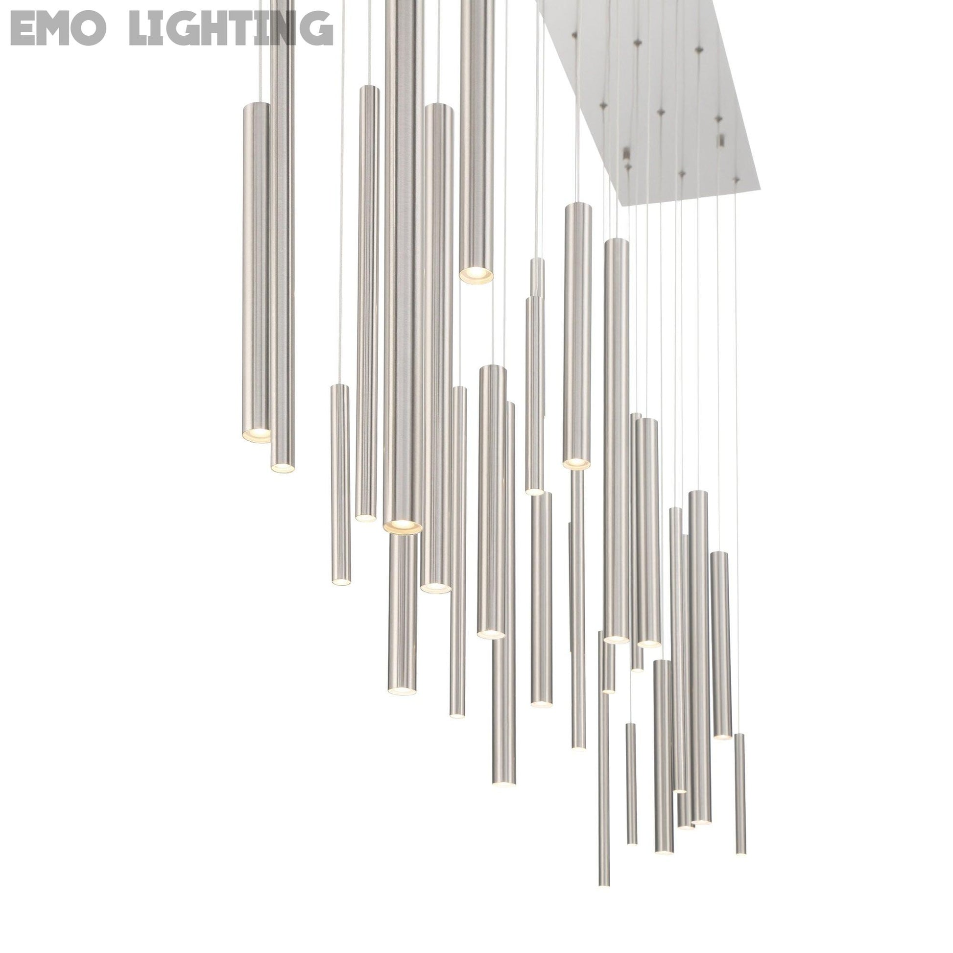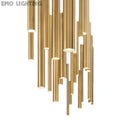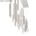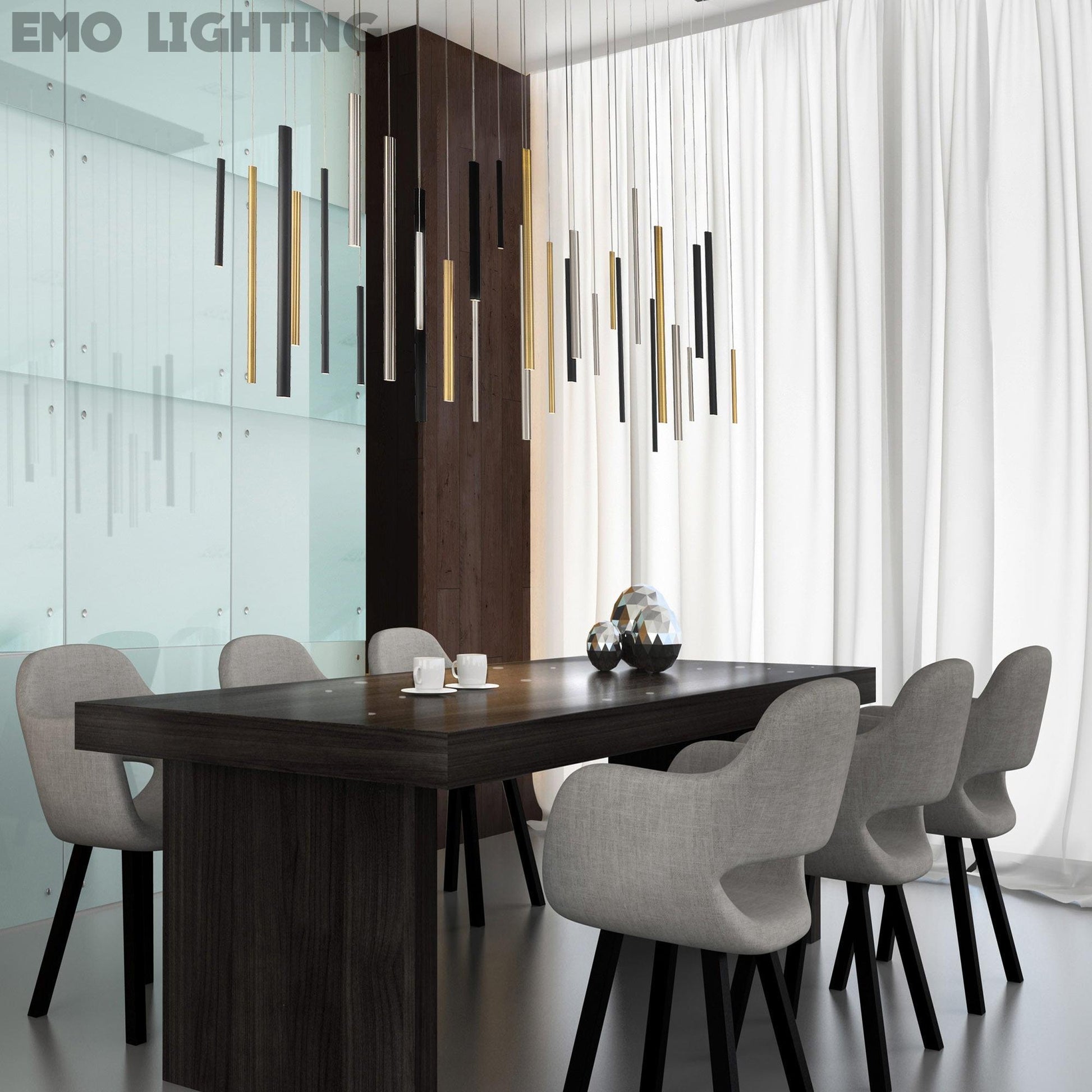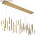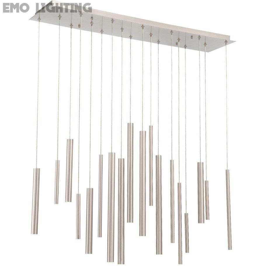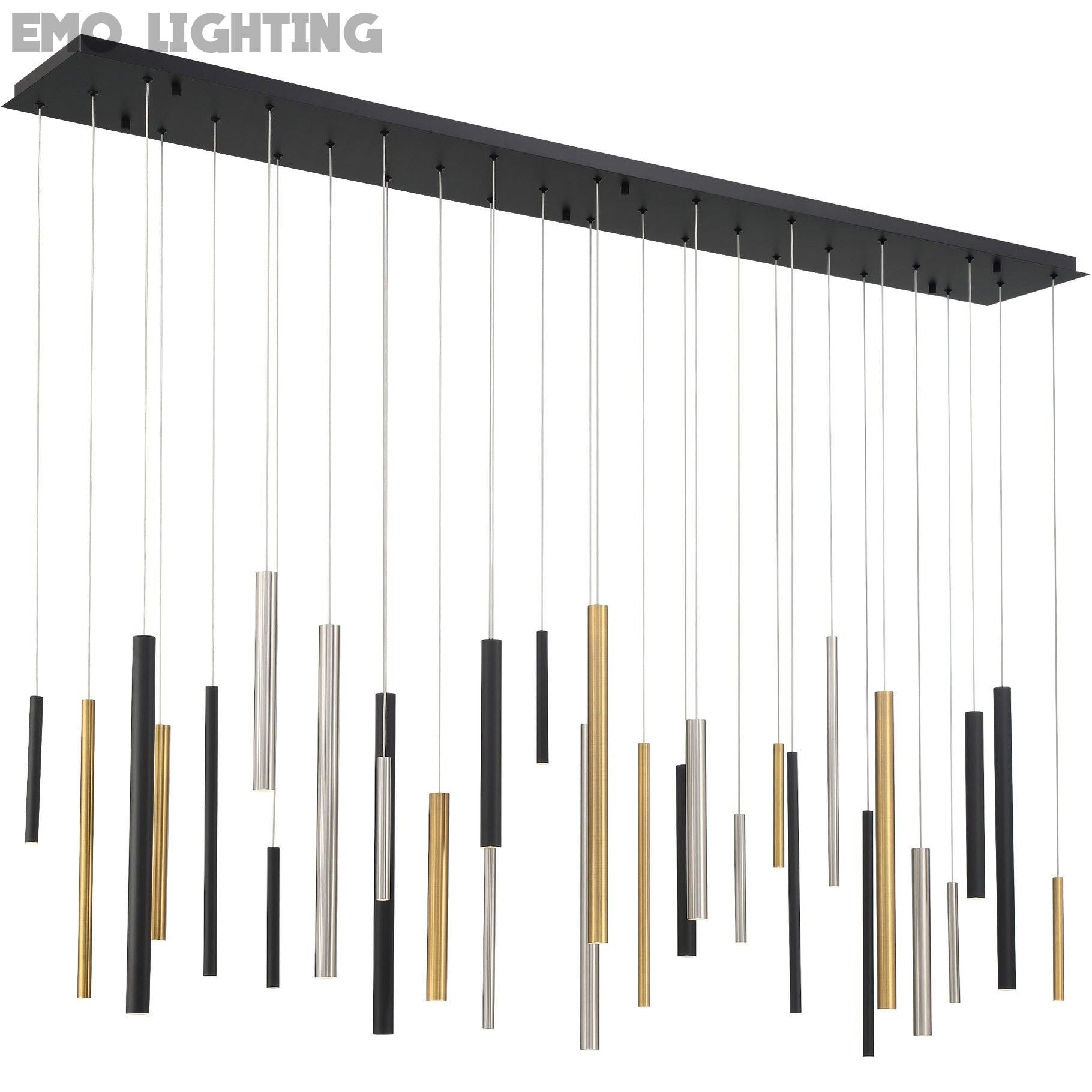 The Santana Linear Multi Light Pendant enhances your space with a sense of dynamic movement, composed of aluminum tubes of varying sizes hung at different adjustable heights. Each tube houses a recessed LED light at the end for collective spot lighting. This dramatic fixture is an ideal centerpiece for modern dining rooms and living areas.