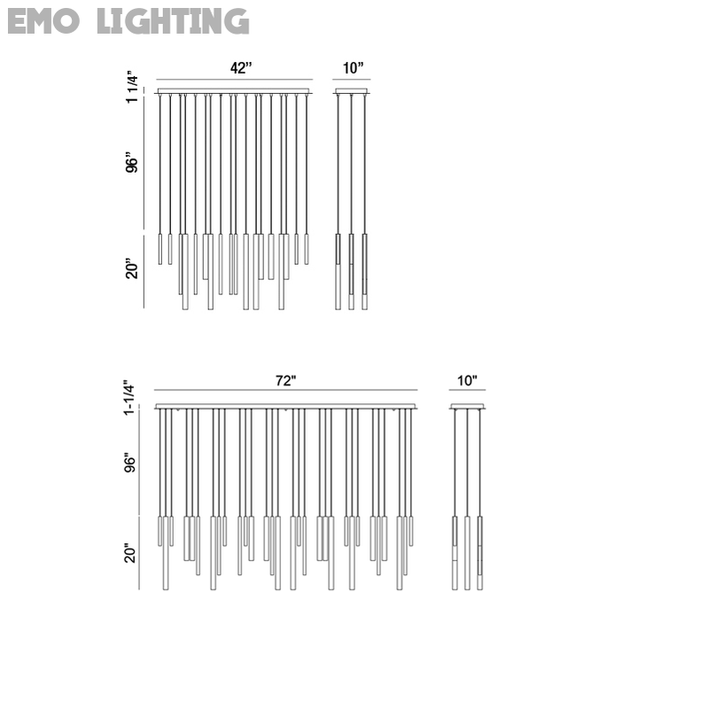 Choose from different finishes (brass, chrome, matte black, gold, or brushed nickel). Adjust wire lengths, chain extensions, and rod dimensions. We also offer lightweight materials such as stainless steel or iron to accommodate ceiling load requirements. -