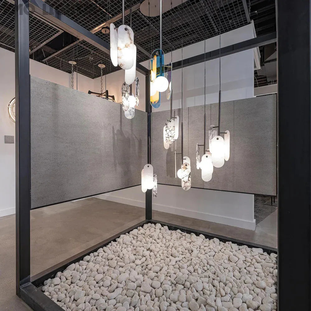 The material of alabaster is marble and copper, this series is a simple design with a modern style, its stylish style highlights its beauty and makes it give a warm and natural feeling while ensuring the light effect Feel.