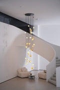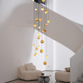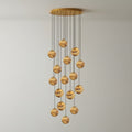 The Sultana Alabaster Cluster Chandelier by emolighting artfully combines natural alabaster spheres with a minimalist metal canopy, creating a dynamic cascade of softly glowing orbs. Each handcrafted sphere highlights unique veining, adding organic texture and depth. Perfect for expansive spaces like foyers or stairwells, this chandelier delivers a sophisticated ambient glow that elevates any interior with refined elegance and sculptural presence.