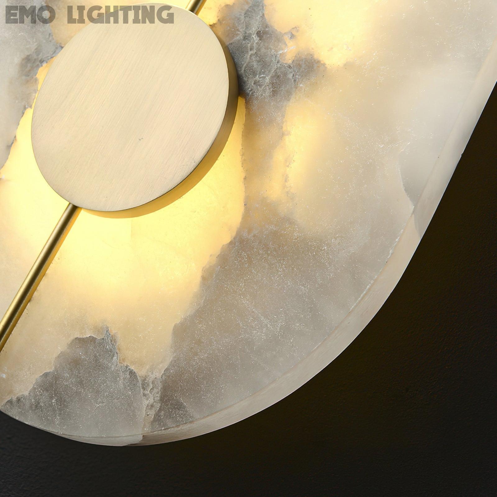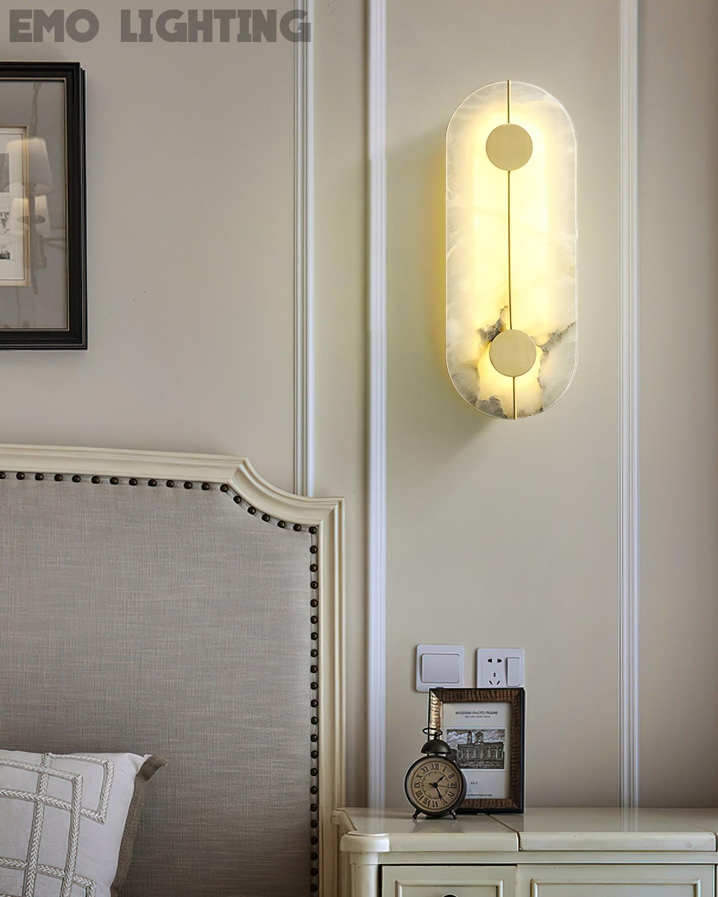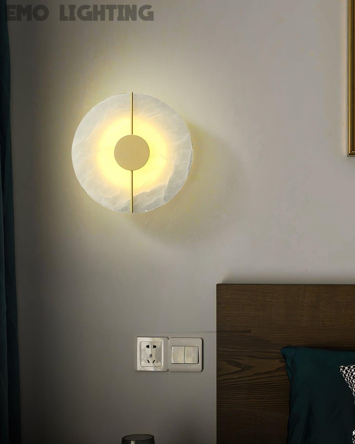 This Thorne Alabaster Wall Lamp adds a sophisticated touch to any room. Its retro-inspired shape is crafted with alabaster and brass for a timeless, elegant finish. When illuminated, the light illuminates a unique, quiet atmosphere. Perfect for corridors, bedside tables, and work desks.