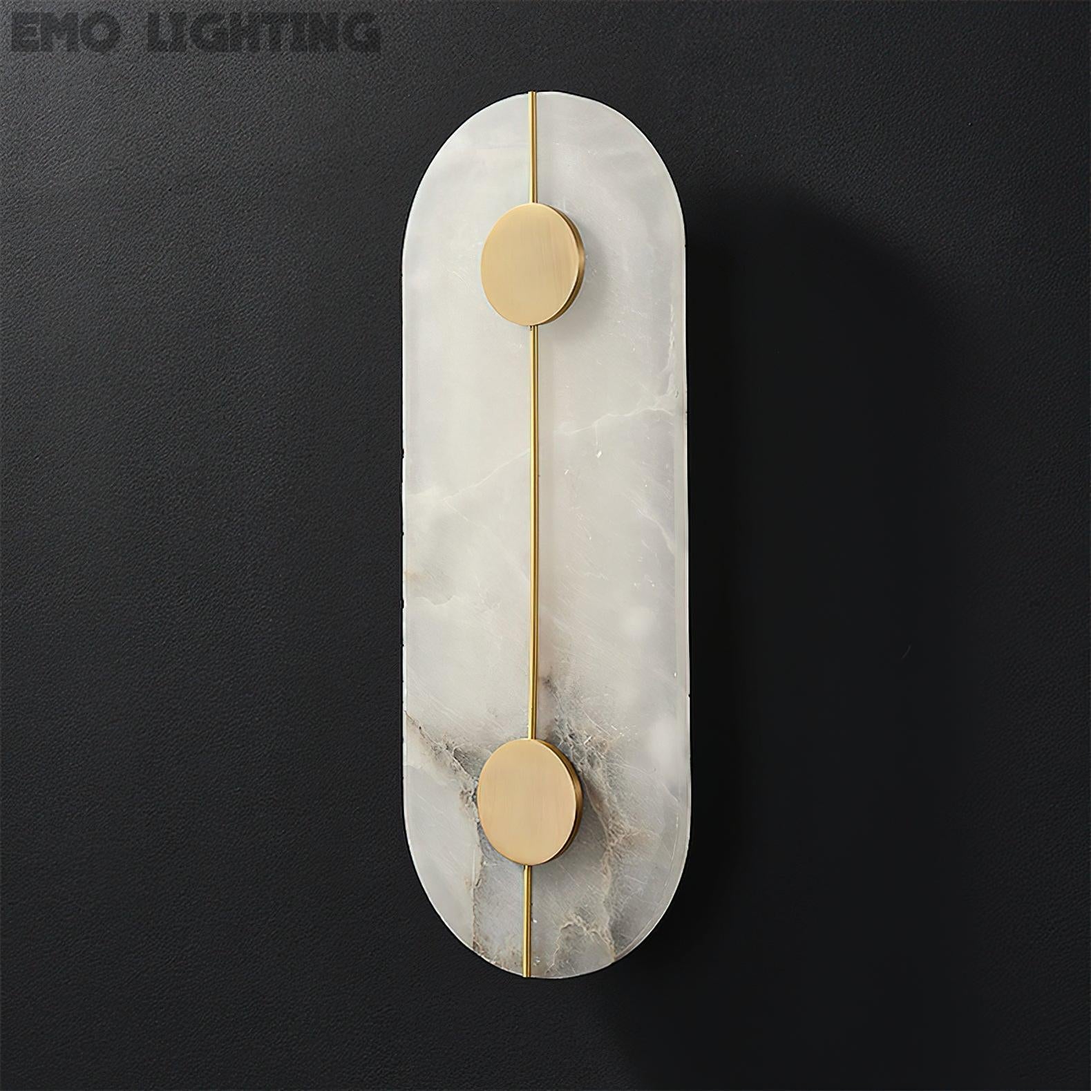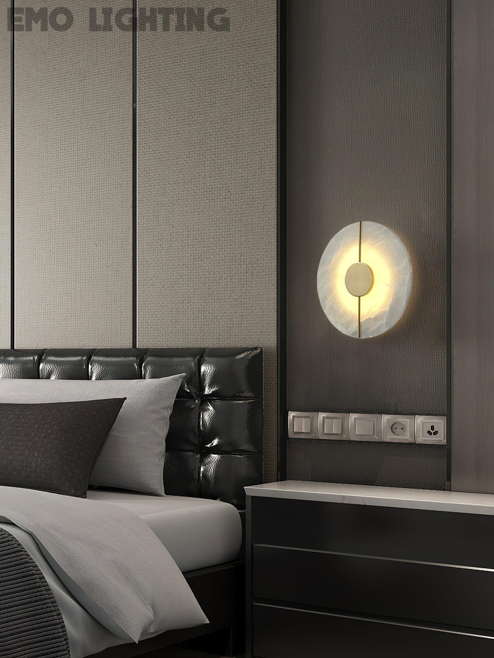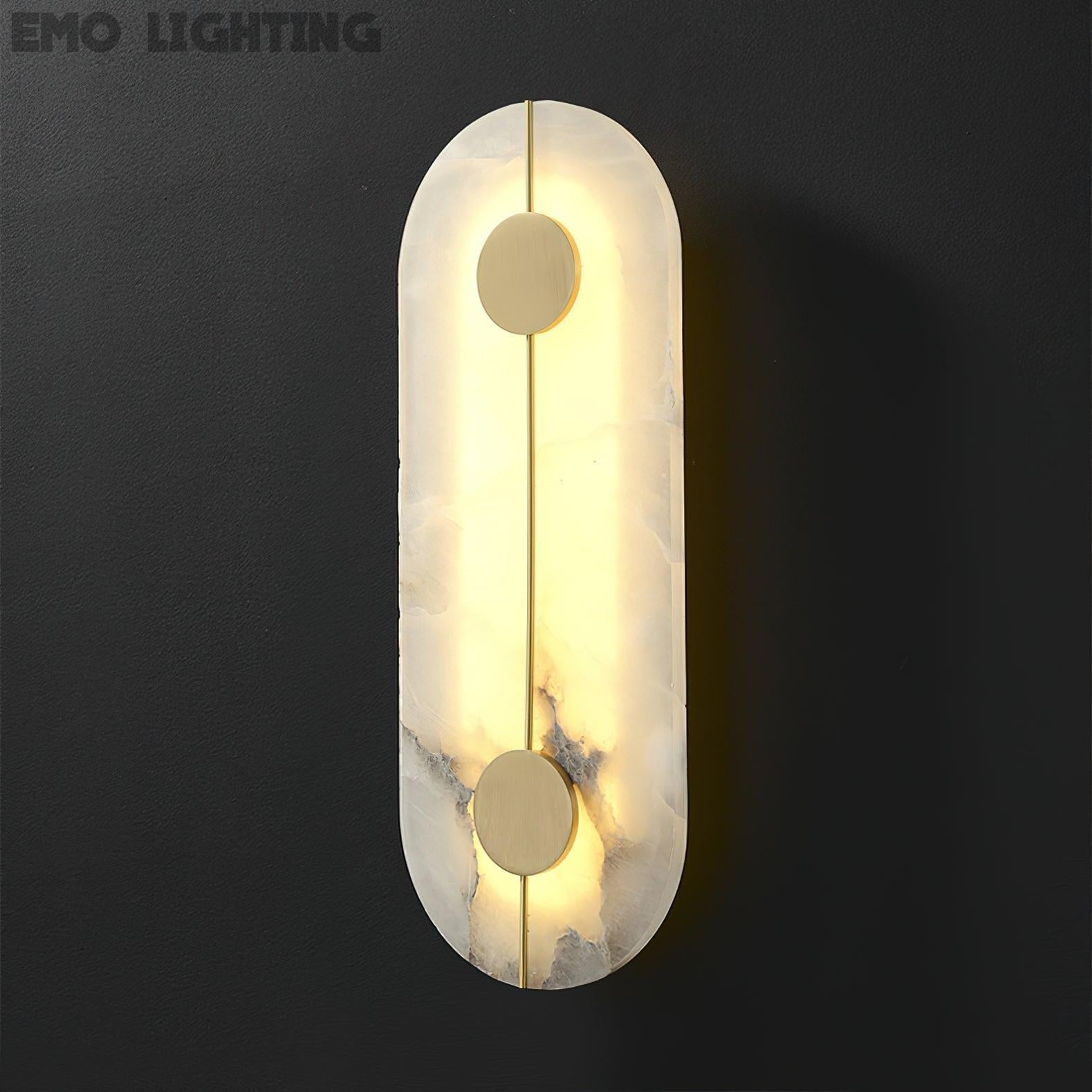 This Thorne Alabaster Wall Lamp adds a sophisticated touch to any room. Its retro-inspired shape is crafted with alabaster and brass for a timeless, elegant finish. When illuminated, the light illuminates a unique, quiet atmosphere. Perfect for corridors, bedside tables, and work desks.