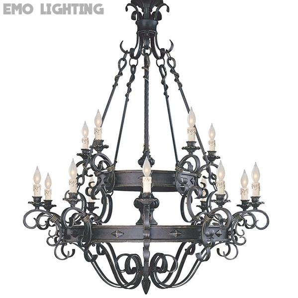 Vintage Iron Simple Candle Art Chandelier for Living Room / Villa / Stairs