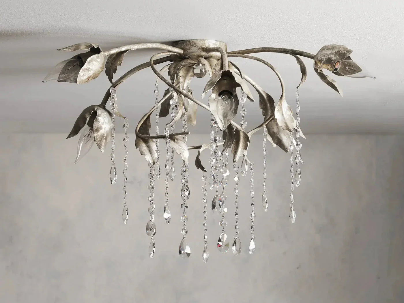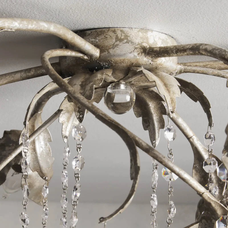- Crafted by our artisan partners from hand-moulded iron, featuring a hand-applied silver finish and elegantly hand-strung, faceted glass crystals.
