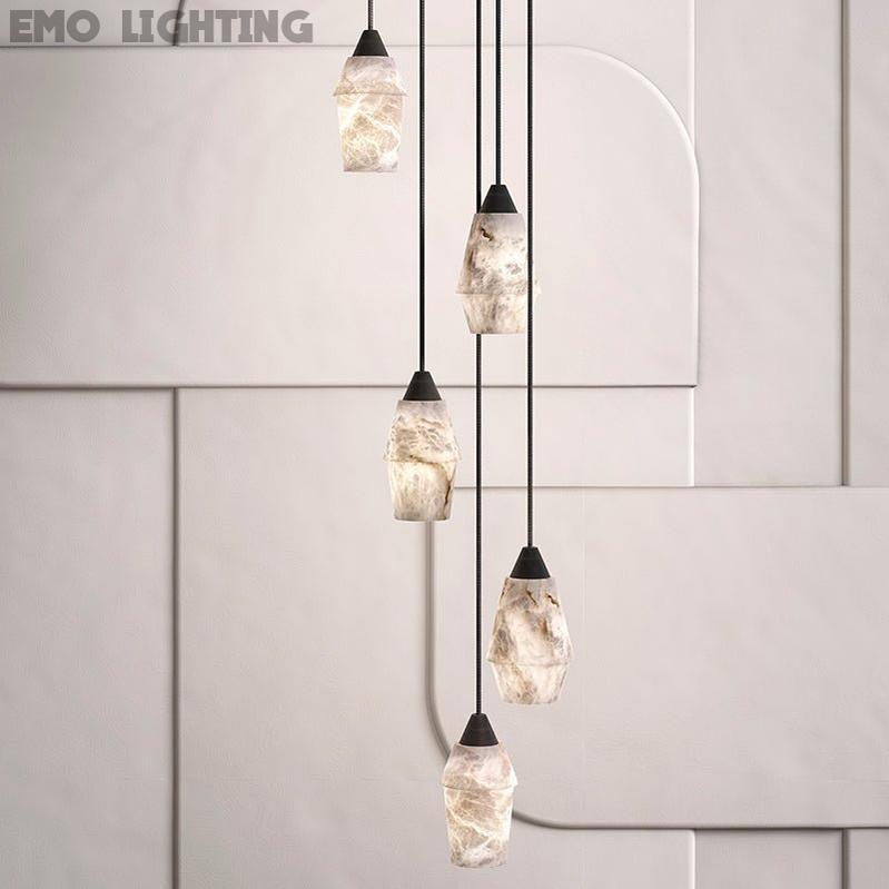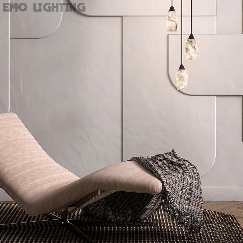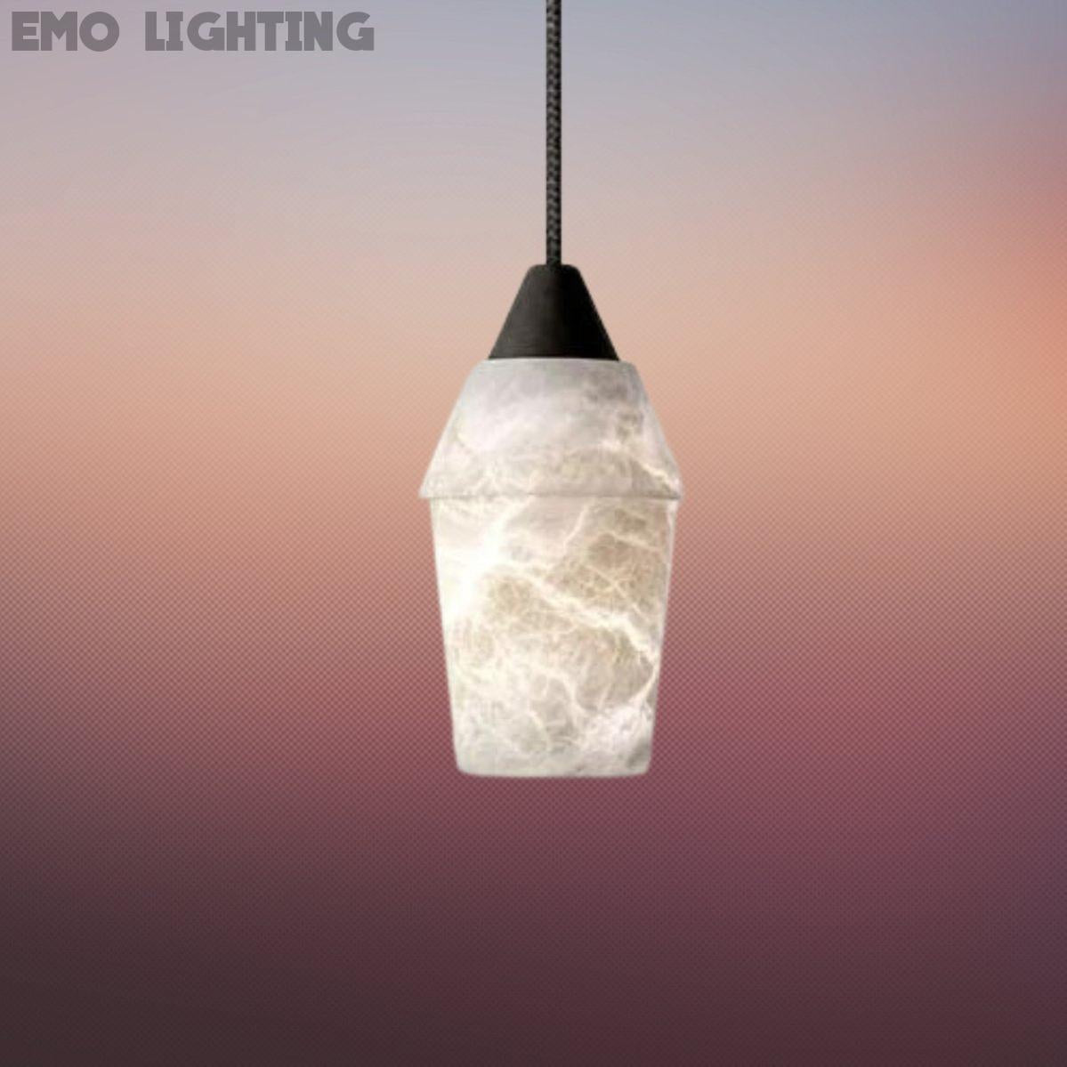 The material of alabaster is Metal & Alabaster, this series is a simple design with a modern style, its stylish style highlights its beauty and makes it give a warm and natural feeling while ensuring the light effect Feel.