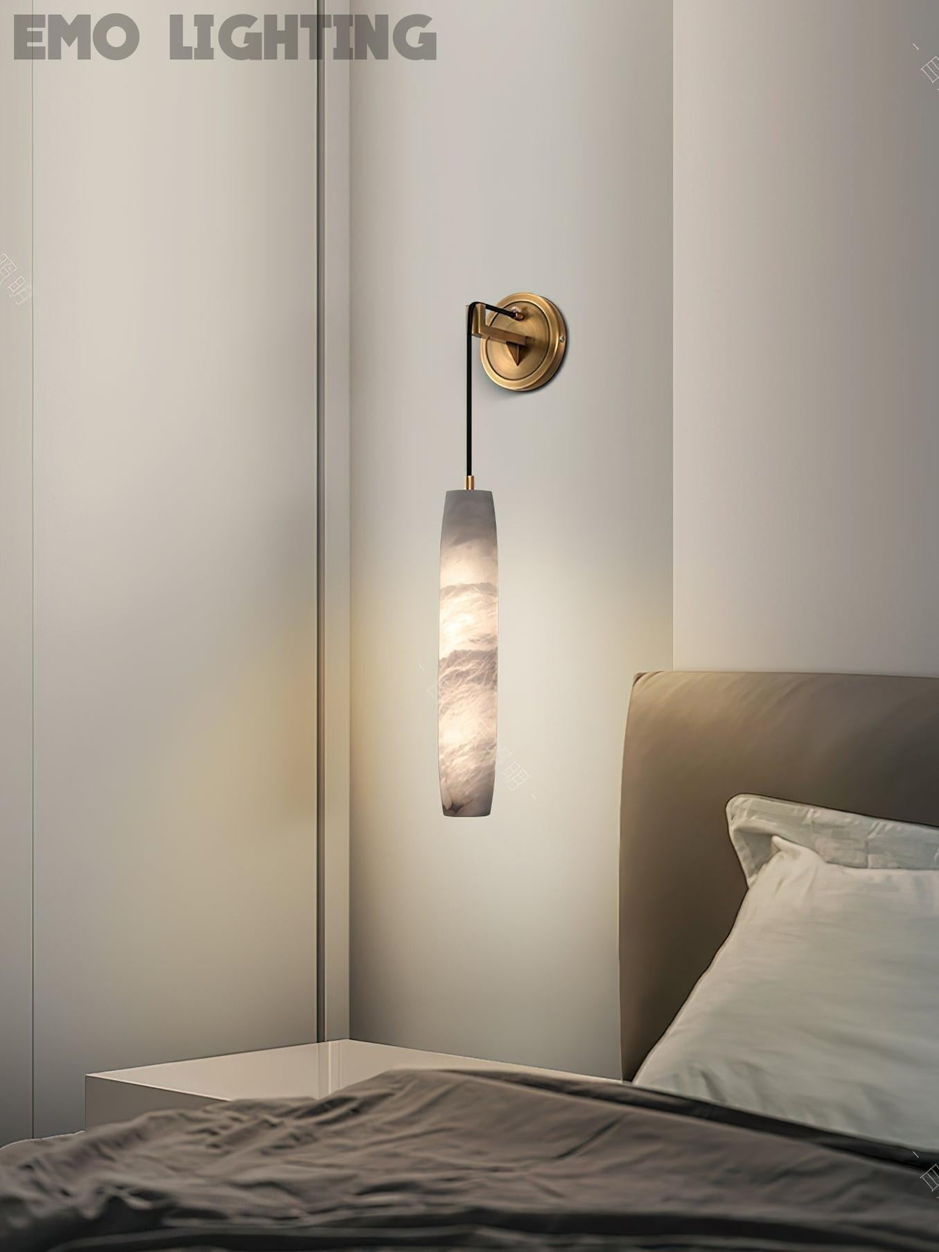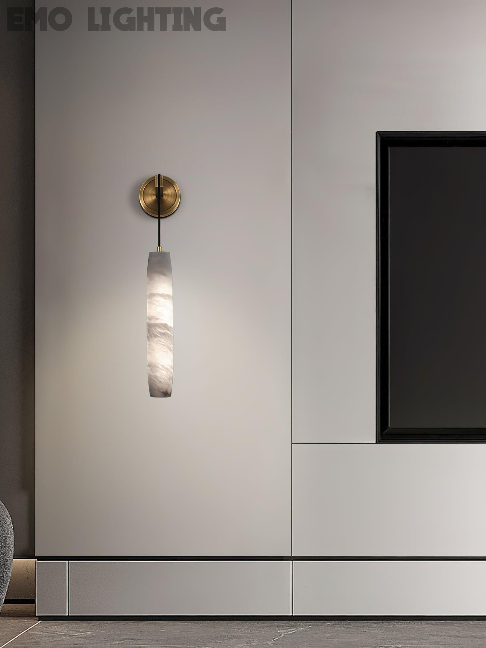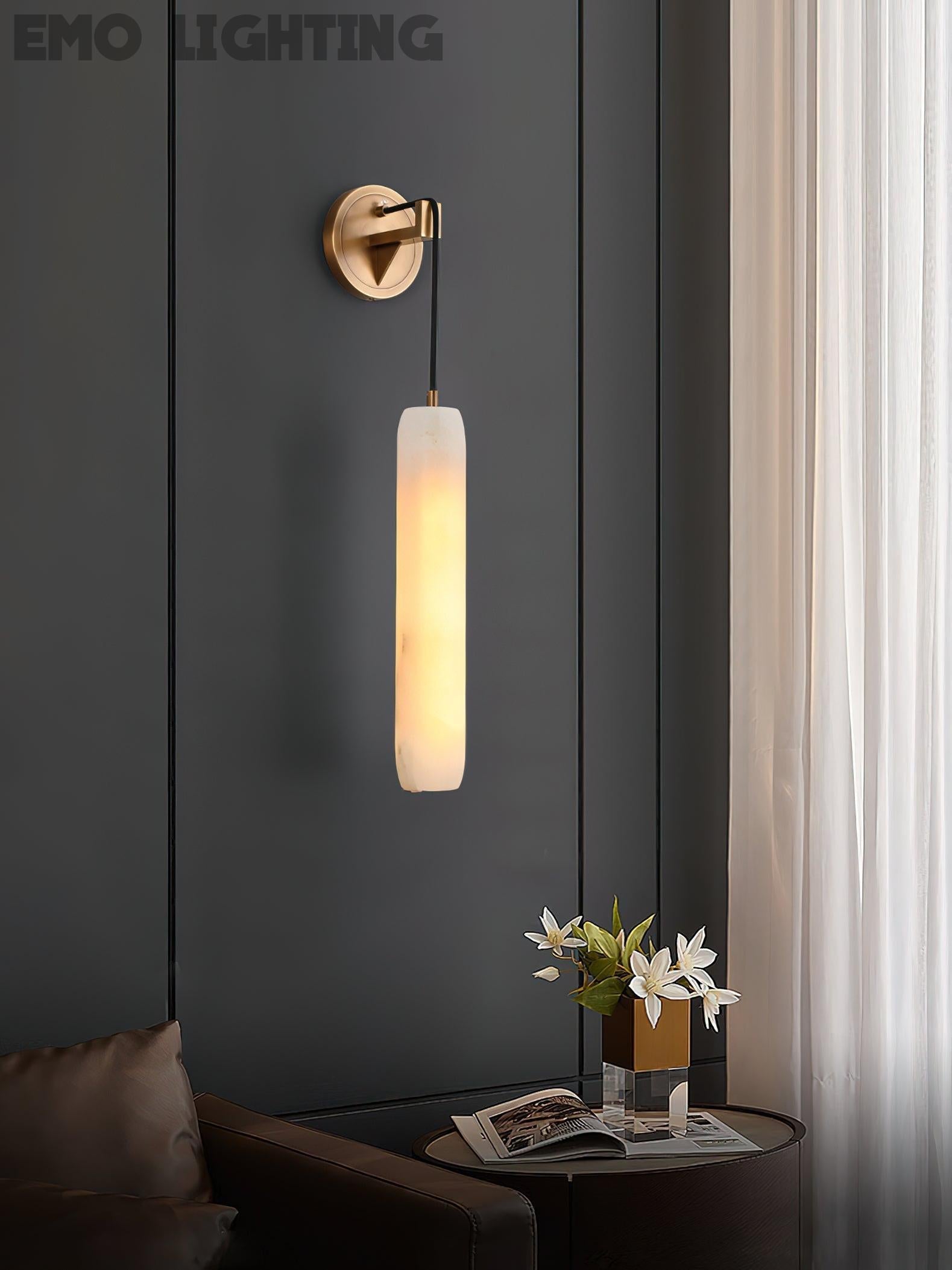 Welcome the Alabaster Flute Wall Lamp into your home. Crafted of high-quality alabaster, it features an elegant flute-shaped silhouette that adds a modern touch to any interior. A perfect addition to any living space or bedroom, the lamp emits a soft warm light to create a cozy atmosphere.